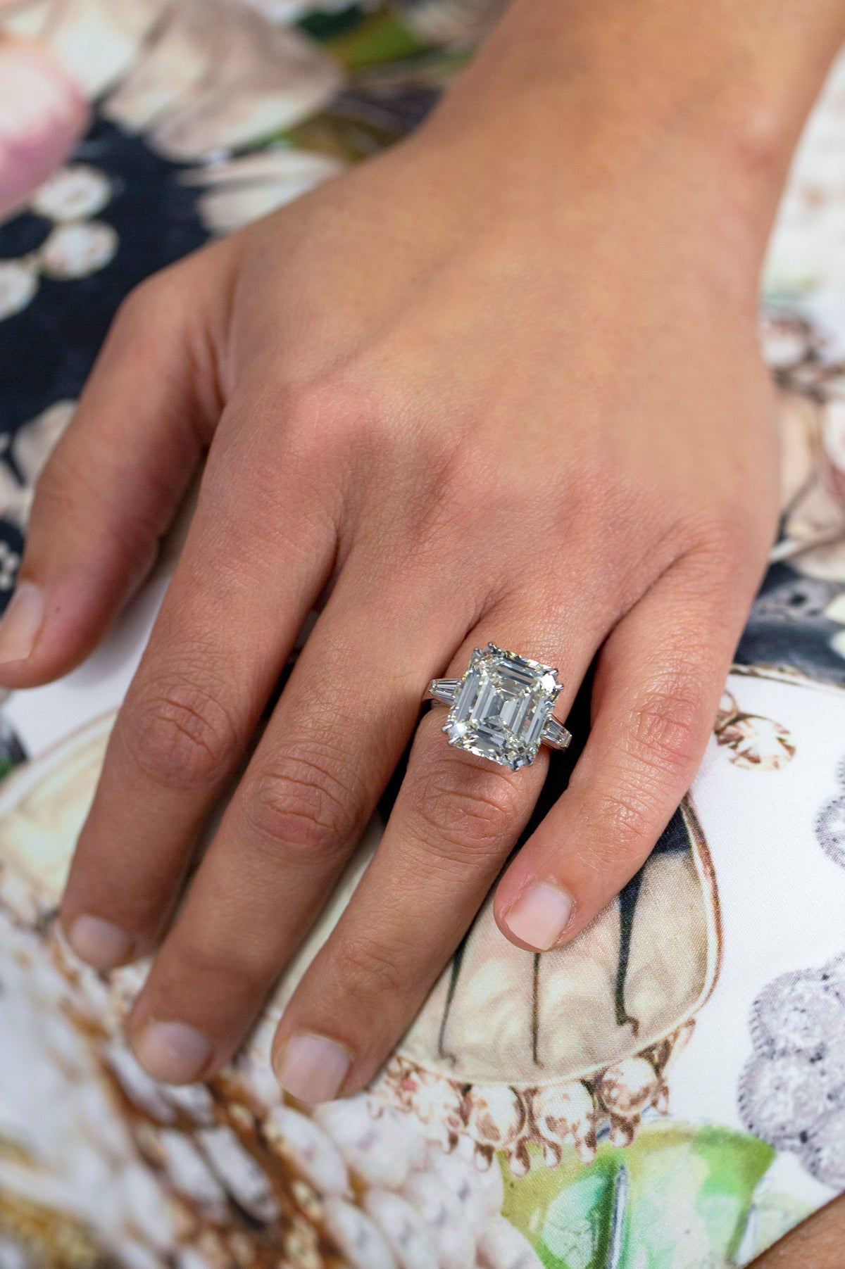 Approximately 12.55 carats, emerald, diamond ring. A modern classic that balances presence with polish, engineered for long-term wear. Colour family: Emerald Green. The setting prioritises stability and comfort, so the diamonds sit securely while keeping light open across the surface. Its value is in its discipline: the ring looks composed up close and commanding from across a room. An enduring asset in jewel form: beautiful to wear, credible to document. Iconic Presence—a piece defined by brilliance, poise, and longevity.