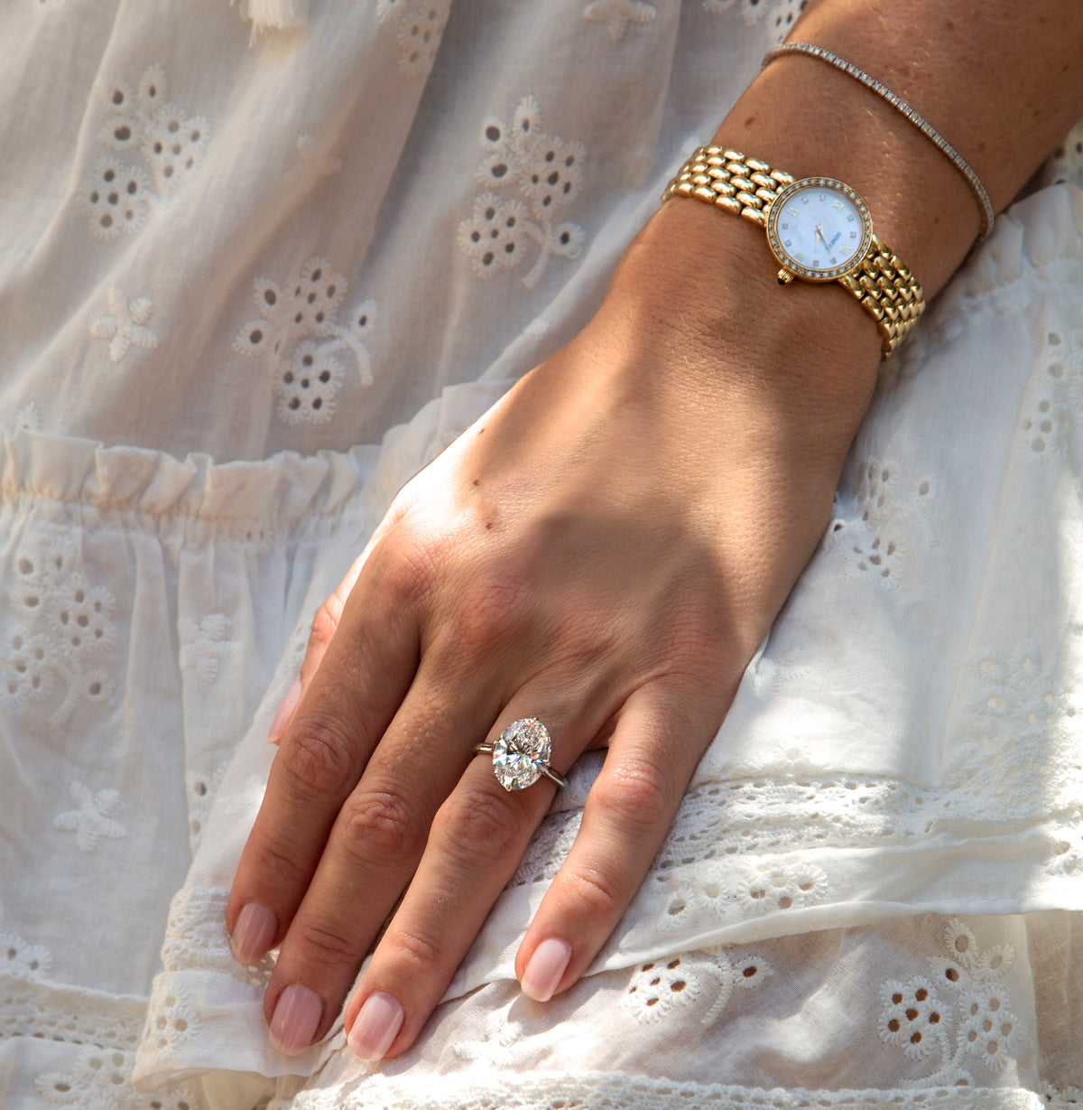 Original price was: $865,000.00.$345,000.00Current price is: $345,000.00.Approximately 6.41 carats, pear, diamond ring. A connoisseur-led design where the face-up stays calm, crisp, and intentionally luxurious. Colour family: Brilliant White. The setting prioritises stability and comfort, so the diamonds sit securely while keeping light open across the surface. Collectors appreciate how it stays coherent from every angle—no noisy flashes, just controlled brilliance. An enduring asset in jewel form: beautiful to wear, credible to document. Refined Grandeur—a piece defined by brilliance, poise, and longevity.