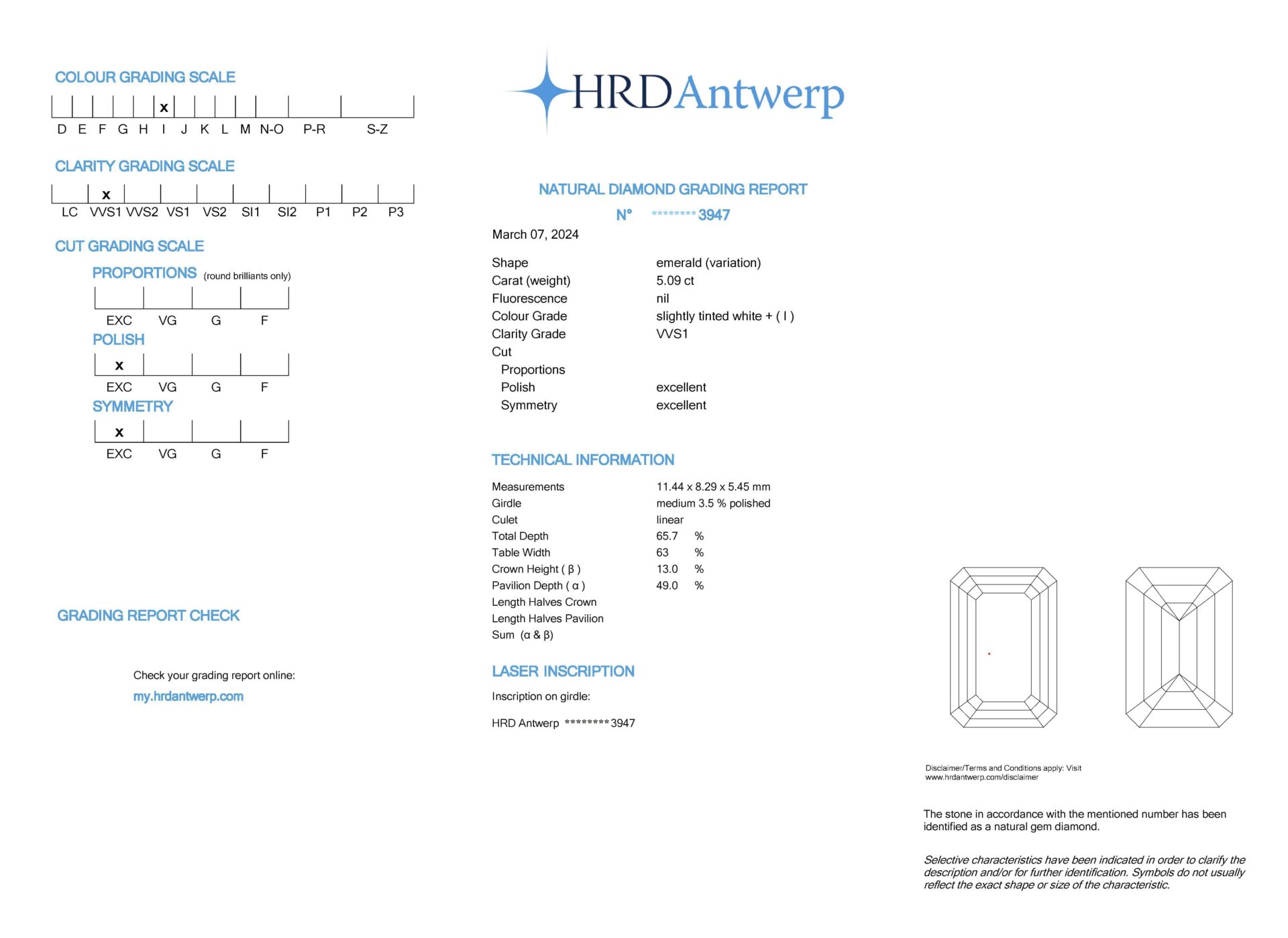 HRD Certified 5.09 Carat Emerald Cut Diamond Ring | VVS1 Clarity | I Color | Timeless Elegance