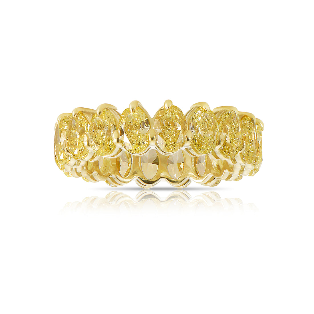 This Legacy design is conceived as a modern classic built around approximately Diamond eternity band of Fancy Yellow oval diamonds, chosen for their ability to light up the hand without ever feeling excessive.