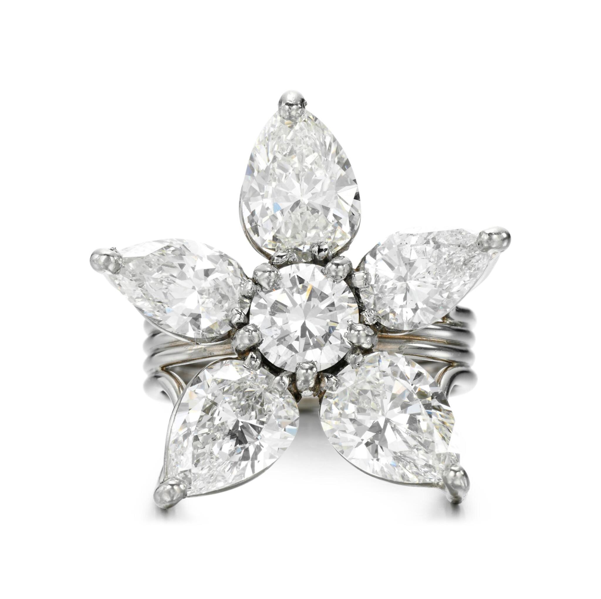 Approximately 5 carats, pear, statement ring, diamond ring. Built for clients who judge a ring in motion, not only in perfect studio light. Colour family: Brilliant White. Metal: 14K White Gold. The setting prioritises stability and comfort, so the diamonds sit securely while keeping light open across the surface. It feels substantial on the hand, yet remains practical enough to be worn often rather than stored away. Ideal for boardroom-to-black-tie wear, with a look that stays precise under close scrutiny. Refined Grandeur—a piece defined by brilliance, poise, and longevity.