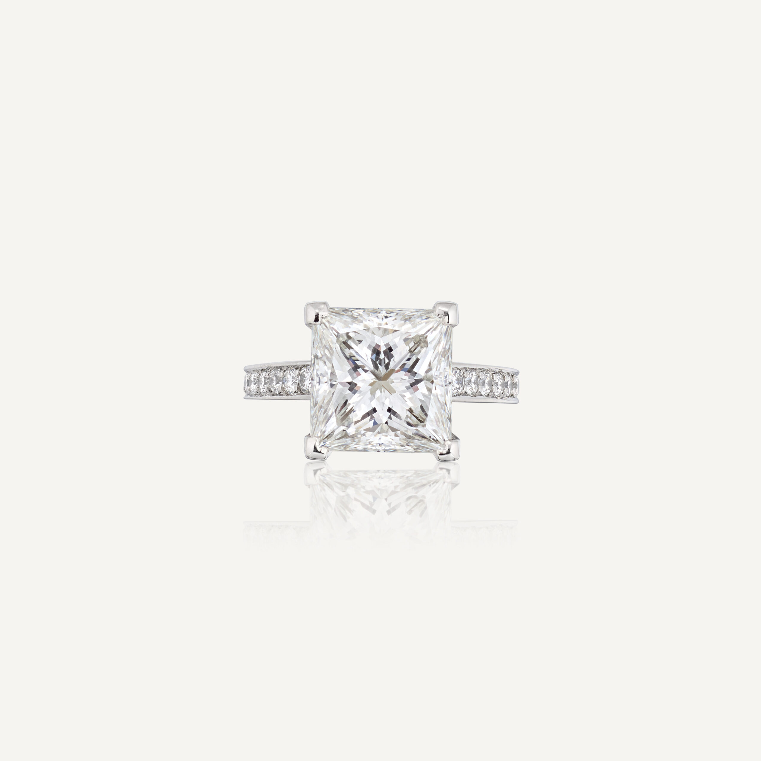 Approximately 5 carats, princess, statement ring, diamond ring. Built for clients who judge a ring in motion, not only in perfect studio light. Colour family: Brilliant White / F color. Clarity: VS. Every decision is made for visual integrity: even sparkle, clean outline, and a flattering look across lighting conditions. Collectors appreciate how it stays coherent from every angle—no noisy flashes, just controlled brilliance. An enduring asset in jewel form: beautiful to wear, credible to document. Refined Grandeur—a piece defined by brilliance, poise, and longevity.