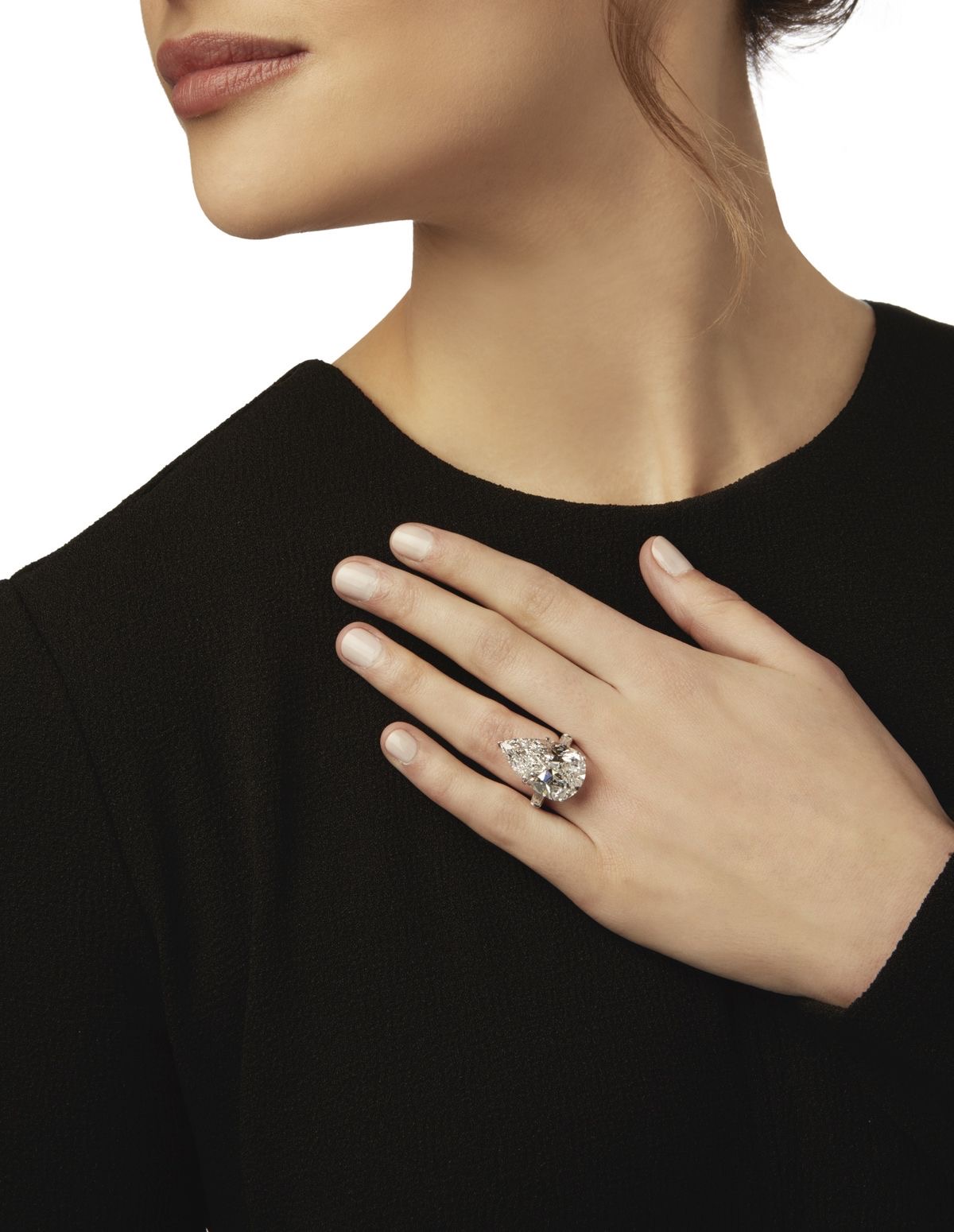 Approximately 6.5 carats, pear, statement ring, diamond ring. A connoisseur-led design where the face-up stays calm, crisp, and intentionally luxurious. Colour family: Brilliant White. Clarity: SI. The setting prioritises stability and comfort, so the diamonds sit securely while keeping light open across the surface. It feels substantial on the hand, yet remains practical enough to be worn often rather than stored away. Ideal for boardroom-to-black-tie wear, with a look that stays precise under close scrutiny. Heirloom-Worthy Glow—a piece defined by brilliance, poise, and longevity.