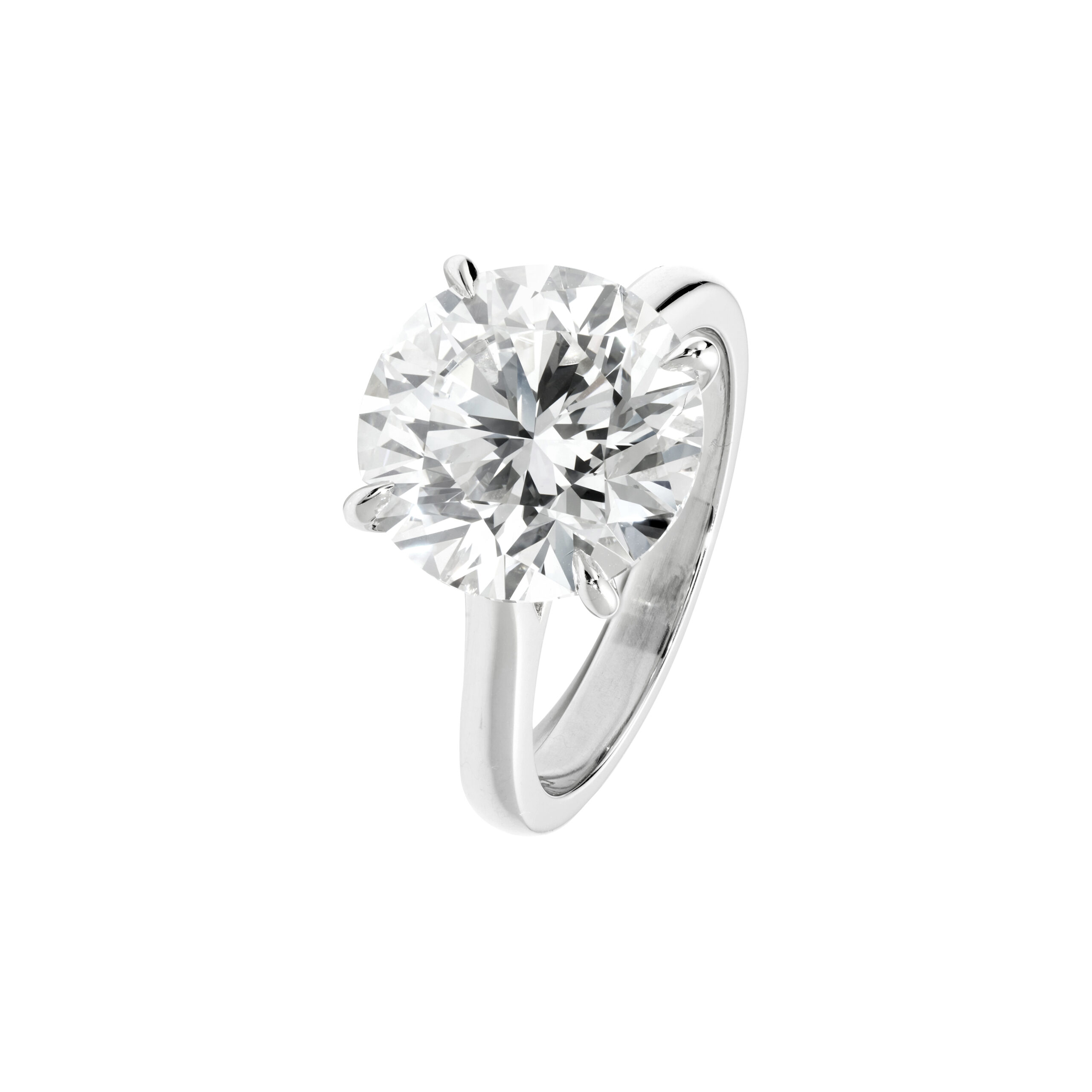 Approximately 5.61 carats, round brilliant, diamond ring. A serious diamond ring with disciplined selection—meant to read clean at normal viewing distance. Colour family: Brilliant White. The silhouette is disciplined and intentional, designed to keep the piece elegant rather than overstated. Collectors appreciate how it stays coherent from every angle—no noisy flashes, just controlled brilliance. A natural choice for milestones, private collections, and heirloom-led gifting. Timeless Brilliance—a piece defined by brilliance, poise, and longevity.