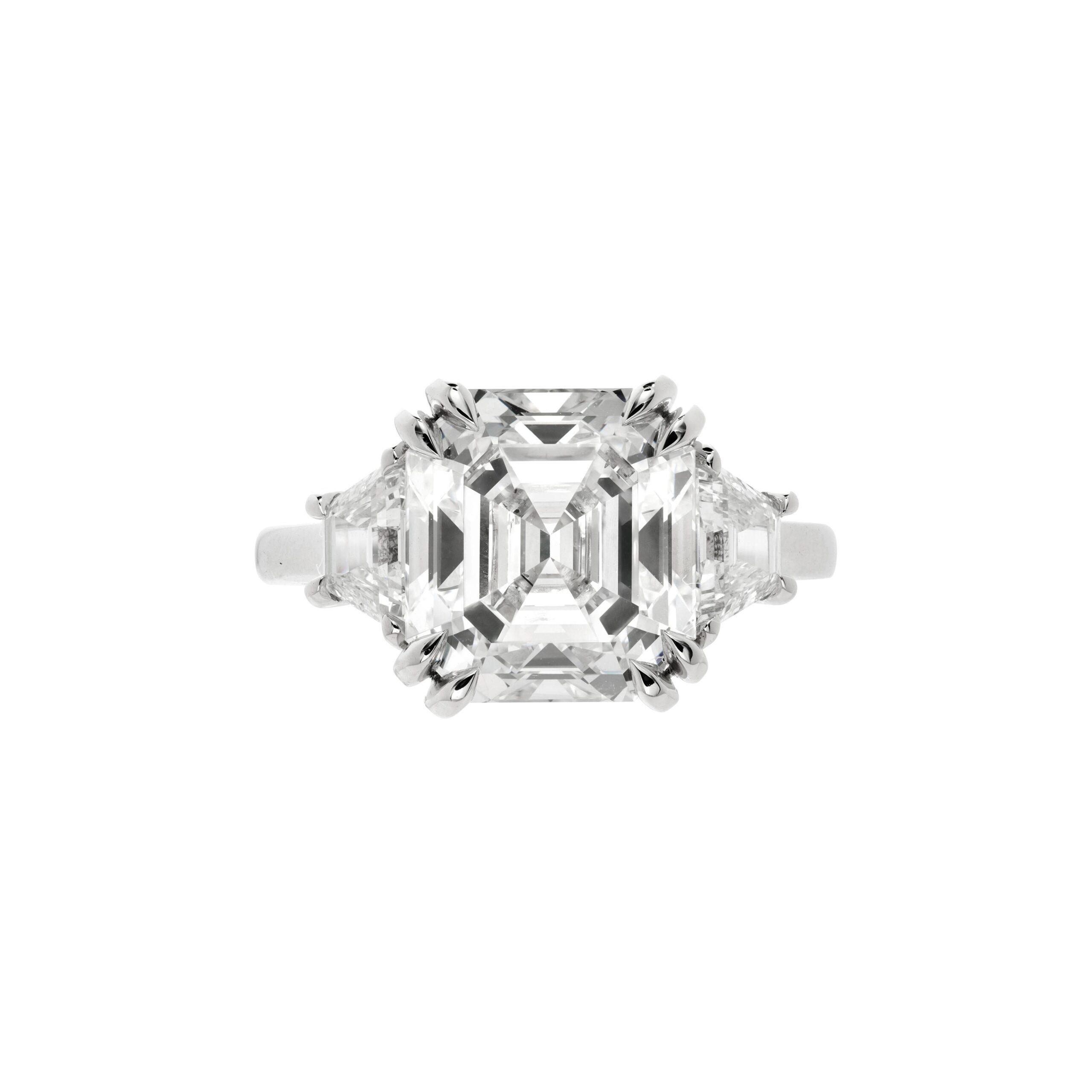 Approximately 5.67 carats, asscher, diamond ring. A modern classic that balances presence with polish, engineered for long-term wear. Colour family: Brilliant White. The silhouette is disciplined and intentional, designed to keep the piece elegant rather than overstated. Its value is in its discipline: the ring looks composed up close and commanding from across a room. An enduring asset in jewel form: beautiful to wear, credible to document. Radiant Elegance—a piece defined by brilliance, poise, and longevity.