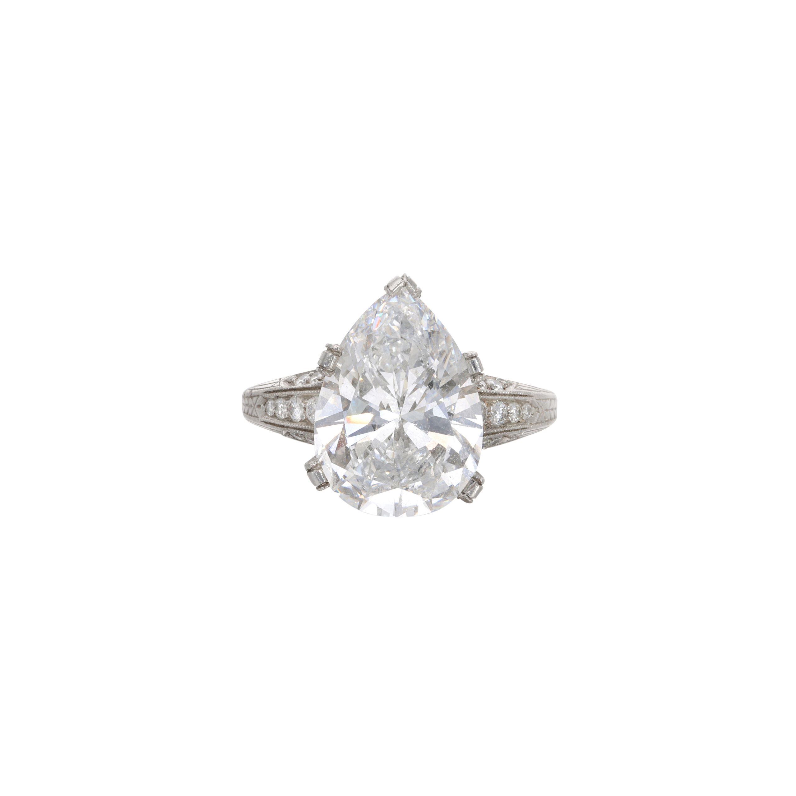 Approximately 4.97 carats, pear, diamond ring. Built for clients who judge a ring in motion, not only in perfect studio light. Colour family: Brilliant White. Metal: 18K Gold. The setting prioritises stability and comfort, so the diamonds sit securely while keeping light open across the surface. Its value is in its discipline: the ring looks composed up close and commanding from across a room. An enduring asset in jewel form: beautiful to wear, credible to document. Everyday Royalty—a piece defined by brilliance, poise, and longevity.
