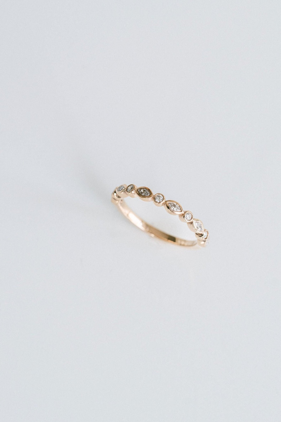 The long-term beauty of this Wedding Band lies in keeping the diamonds clean and the structure undisturbed. Avoid twisting the ring off by catching a single claw or gallery; instead, slide it straight over the knuckle, so tension is placed on the band rather than the setting.