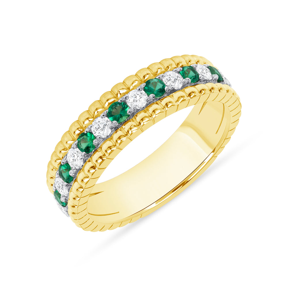 - Lay Zhang · The choreography of light across a round surface can feel like its own performance; this $3500 alternating round brilliant diamond and emerald band lets the emerald green sparkle follow every gesture with controlled drama.
