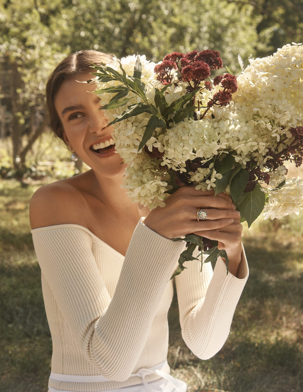 Think of this ring as a piece that edits, rather than complicates, your look. The clean line of the Round stones and the concentrated Carat weight on request of Brilliant White diamonds reward simple, architectural clothing β column dresses, precise blazers, cashmere knits and well-cut denim all give it room to breathe.