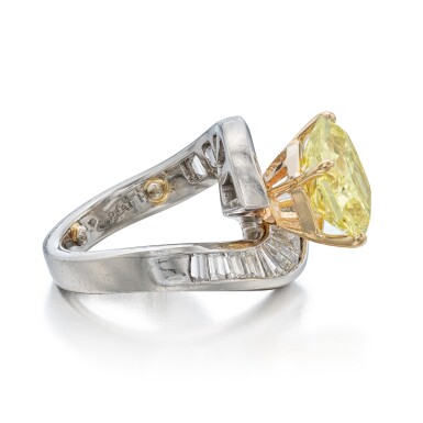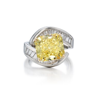 Viewed from any angle, the approximately Carat weight on request of Fancy Yellow diamonds create a wide field of brilliance across the finger. The carat weight is generous enough to be unmistakable in a room, yet balanced so that the ring never feels overpowering.