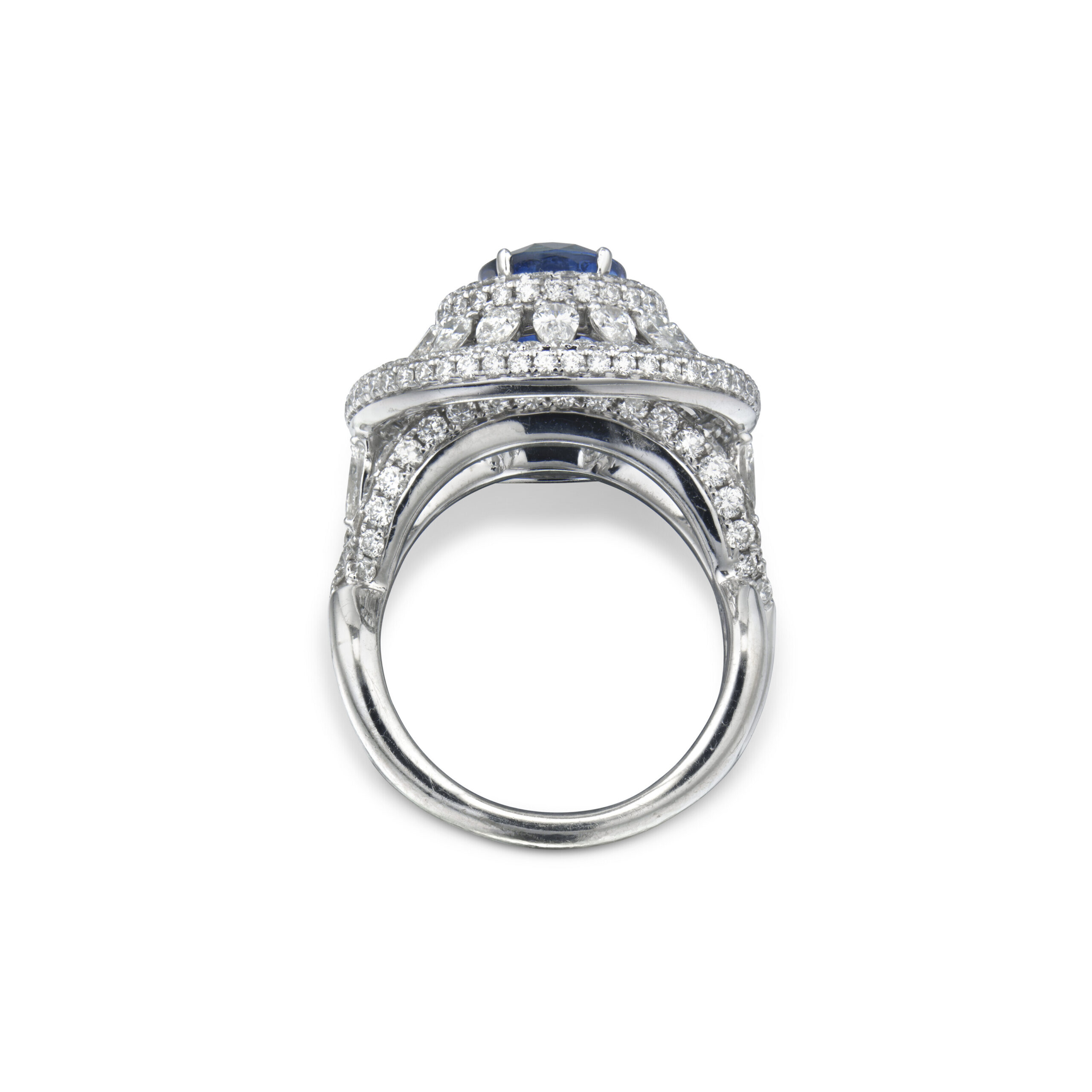 Celebrating the powerful allure of Royal Blue Sapphire diamonds and gemstones, this Legacy ring showcases approximately Carat weight on request of diamonds in a luminous high jewelry silhouette.