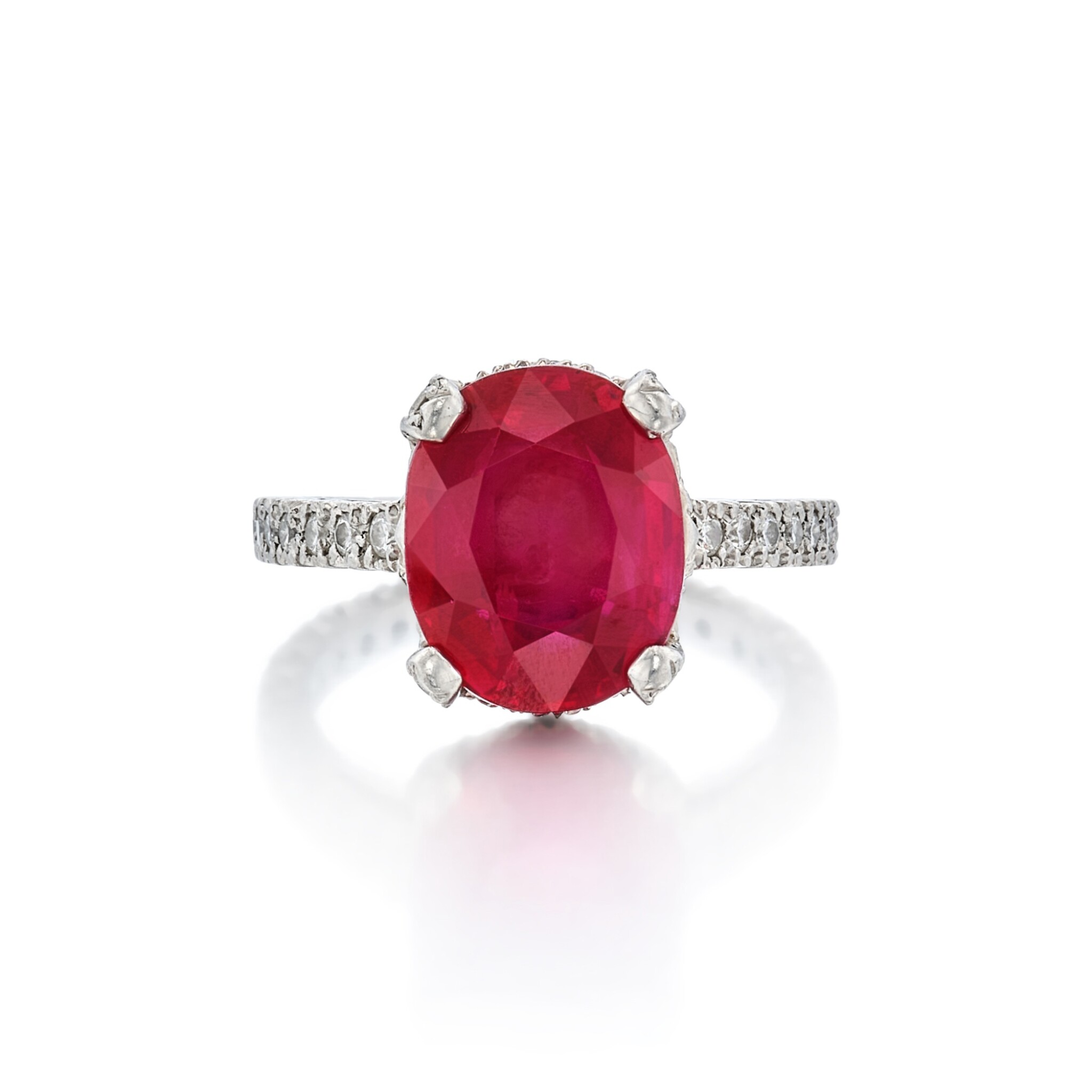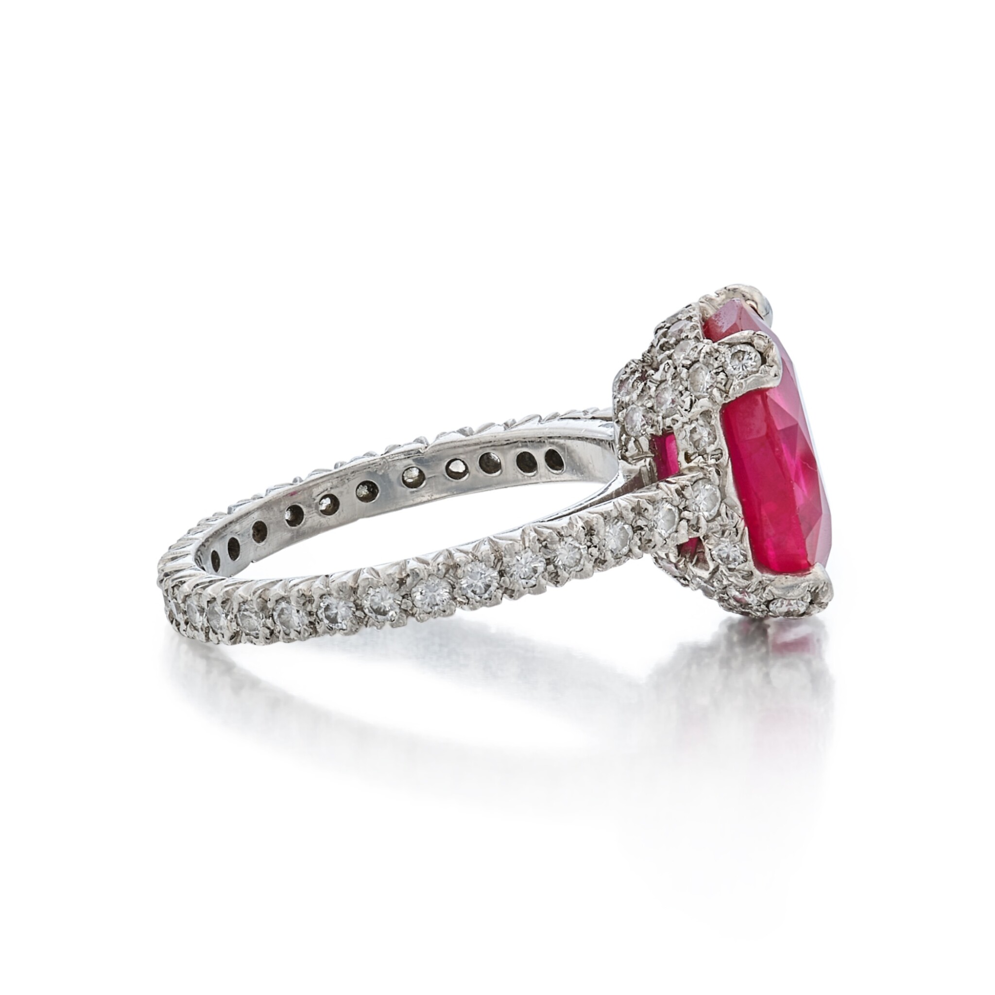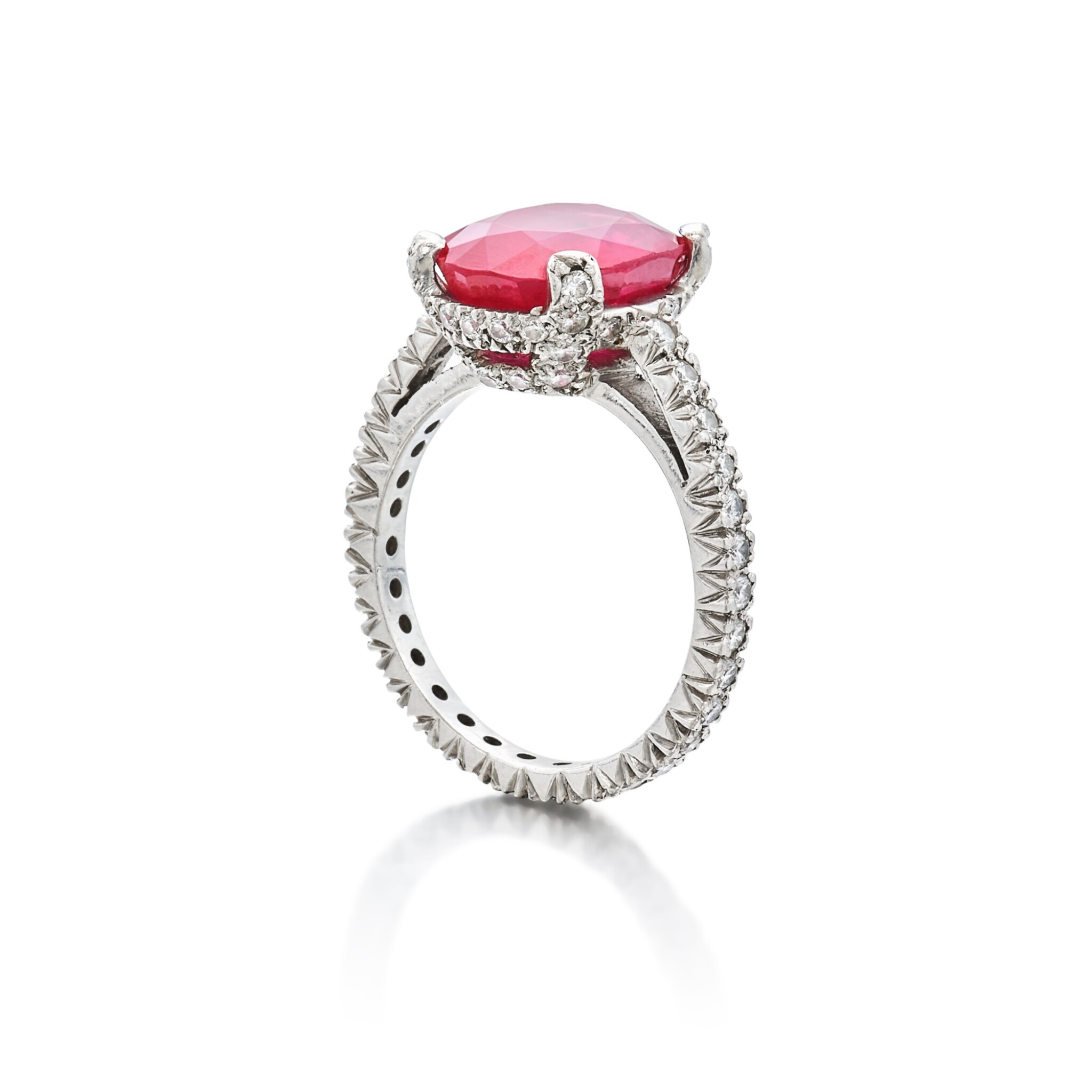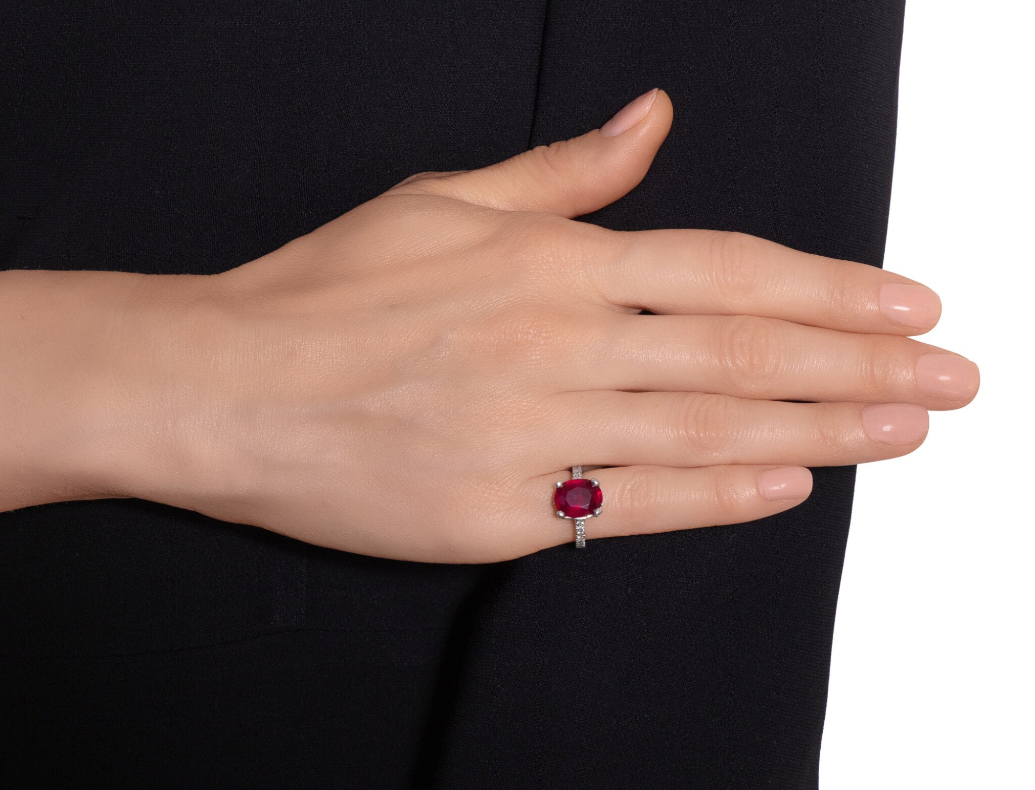 The carat weight of approximately Carat weight on request has been deliberately focused into the area that matters most: the top of the finger. This concentration of Ruby Red light allows the ring to photograph powerfully and to hold its own beside serious timepieces and bracelets.